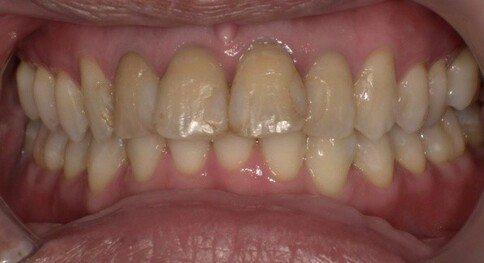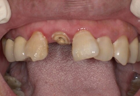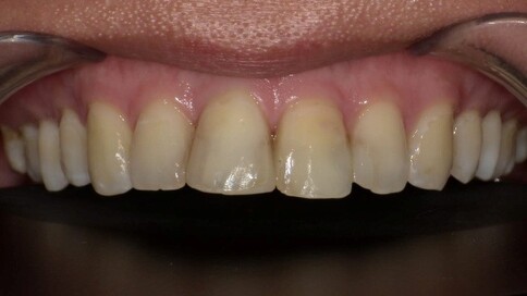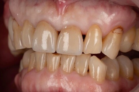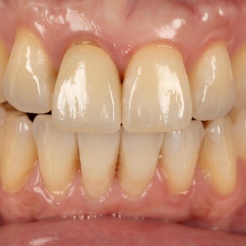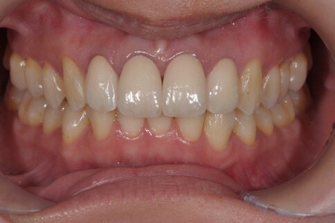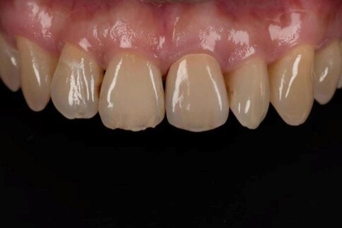 Case 6:僅用兩顆全瓷冠解決色差與中軸偏差。