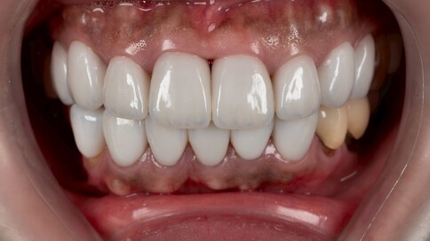 Case 1:舊假牙死白換新,牙肉回彈跡象。